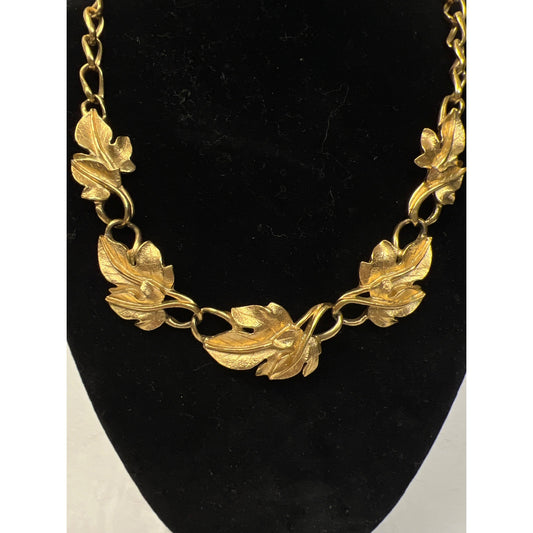 Trifari Vintage Kunio Matsumoto Gold Tone Ivy Leaf Necklace