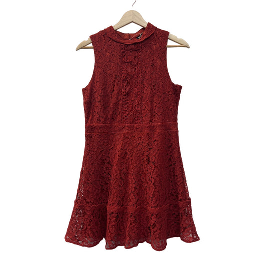 Blu Pepper Burnt Orange Floral Lace Overlay Sleeveless A-Line Dress