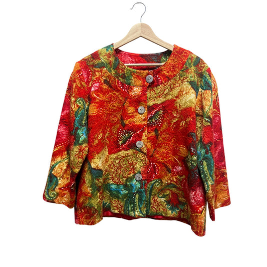 Chico's Red Abstract Floral Bolero Blazer Jacket