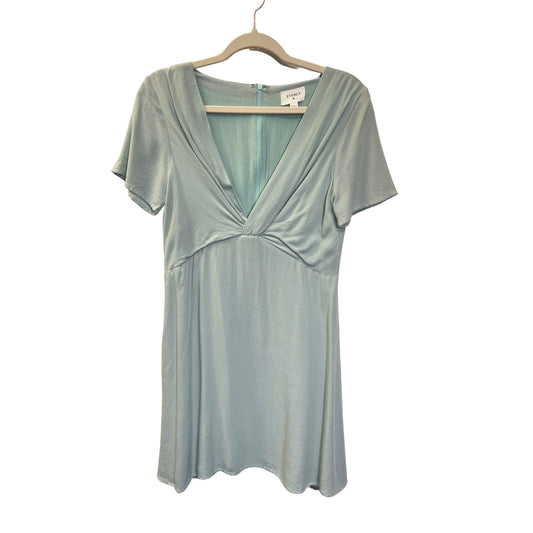 Everly Light Blue Green Linen Twist Front Short Sleeve A-line dress