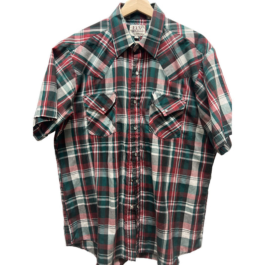 Ely Cattleman Vintage Red & Green Short Sleeve Pearl Snap Shirt
