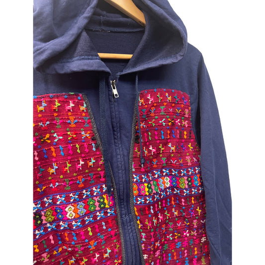 Guatemalan Red and Navy Embroidered Full Zip Hoodie