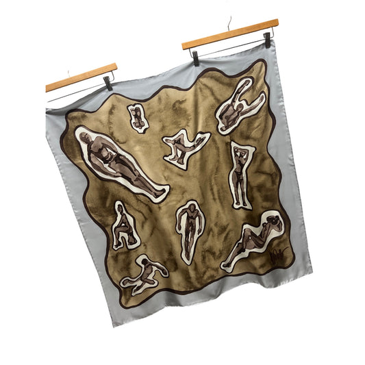 Ippolita Gray & Taupe Silk Abstract Sculpture Artwork Scarf
