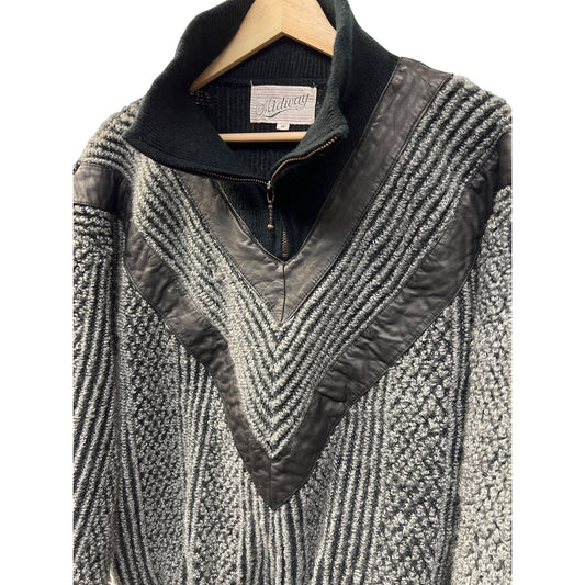 Midway Vintage 80's Quarter Zip Textured Sweater with Leather Trim