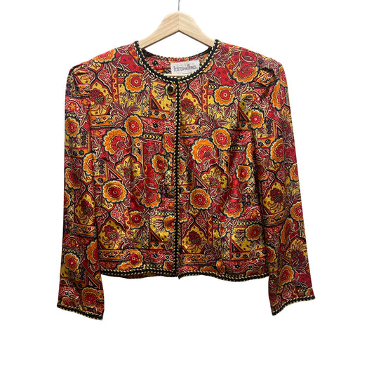Petites for Maggy Vintage 80's Orange and Red Floral Black Trim Bolero Jacket