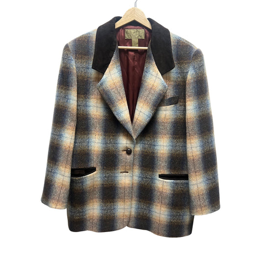 JL Colebrook Vintage 90's Brown Wool Plaid Blazer with Velvet Trim