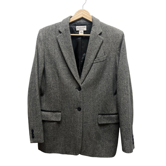 Pendleton Vintage 90's Y2K Gray Chevron Wool Black Faux Leather Trim Professional Blazer