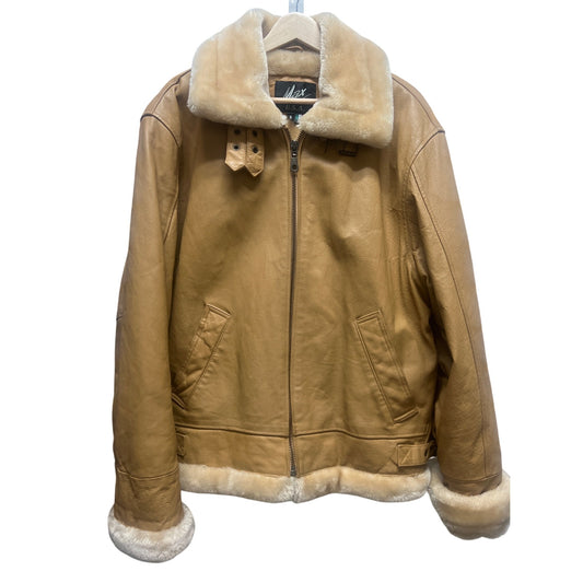 Max USA Vintage Italian Tan Leather Shearling Lined Aviator Bomber Jacket