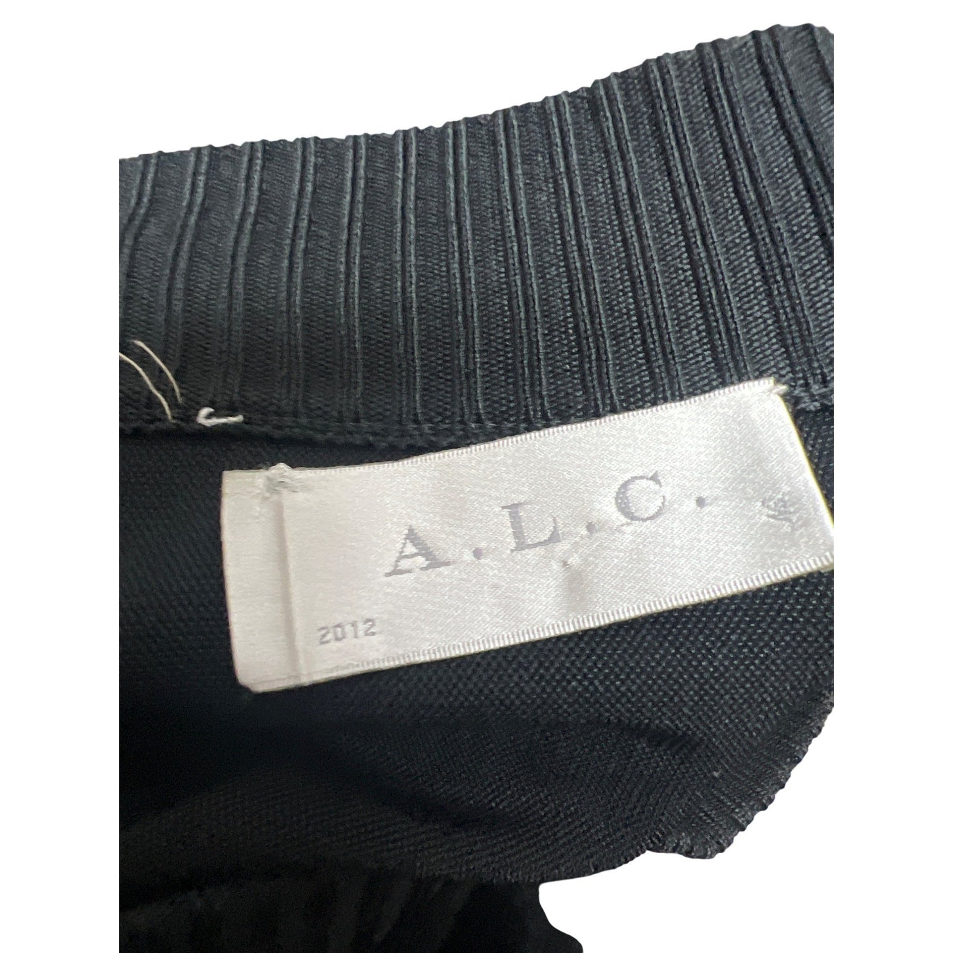 Elevate your style with this A.L.C. black knit mini skirt, perfect for any occasion. Its stretch fabric ensures a comfortable fit, while the circle silhouette adds a modern touch to your wardrobe. Ideal for pairing with your favorite tops and shoes. Great preowned condition