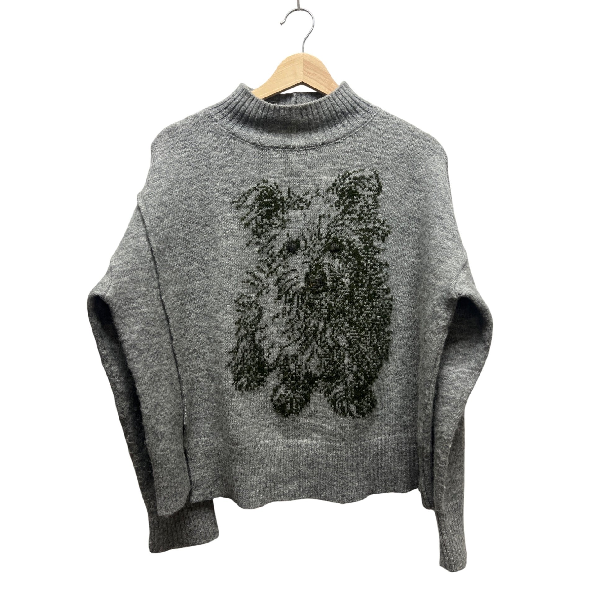 Anthropologie Moth Gray & Green Wool Blend Mock Neck Scotty Dog Sweater