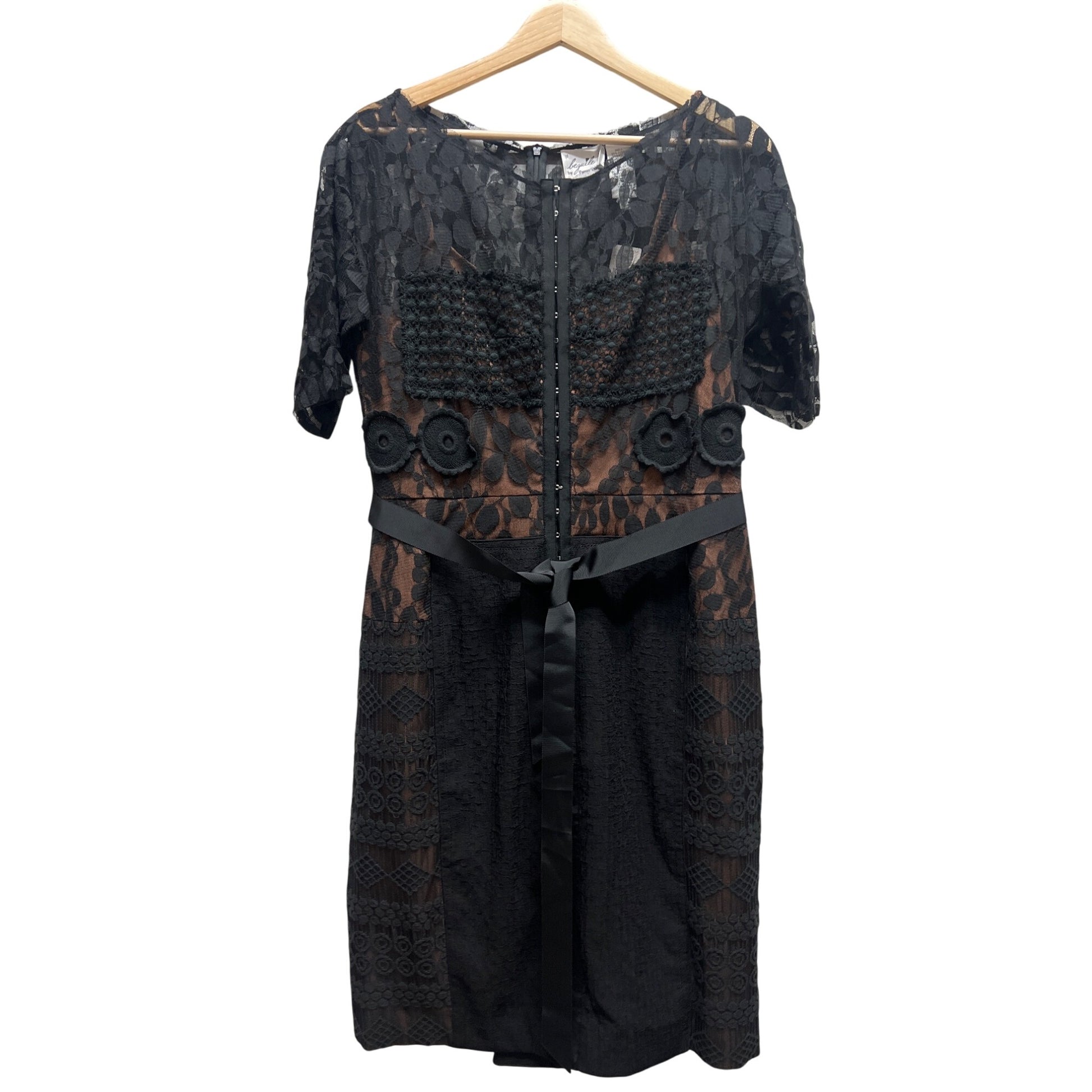 This elegant Carissima sheath dress by Byron Lars for Anthropologie features a black lace overlay and a flattering pencil silhouette, perfect for special occasions or chic evenings out. New with tags, it combines classic style with modern sophistication.