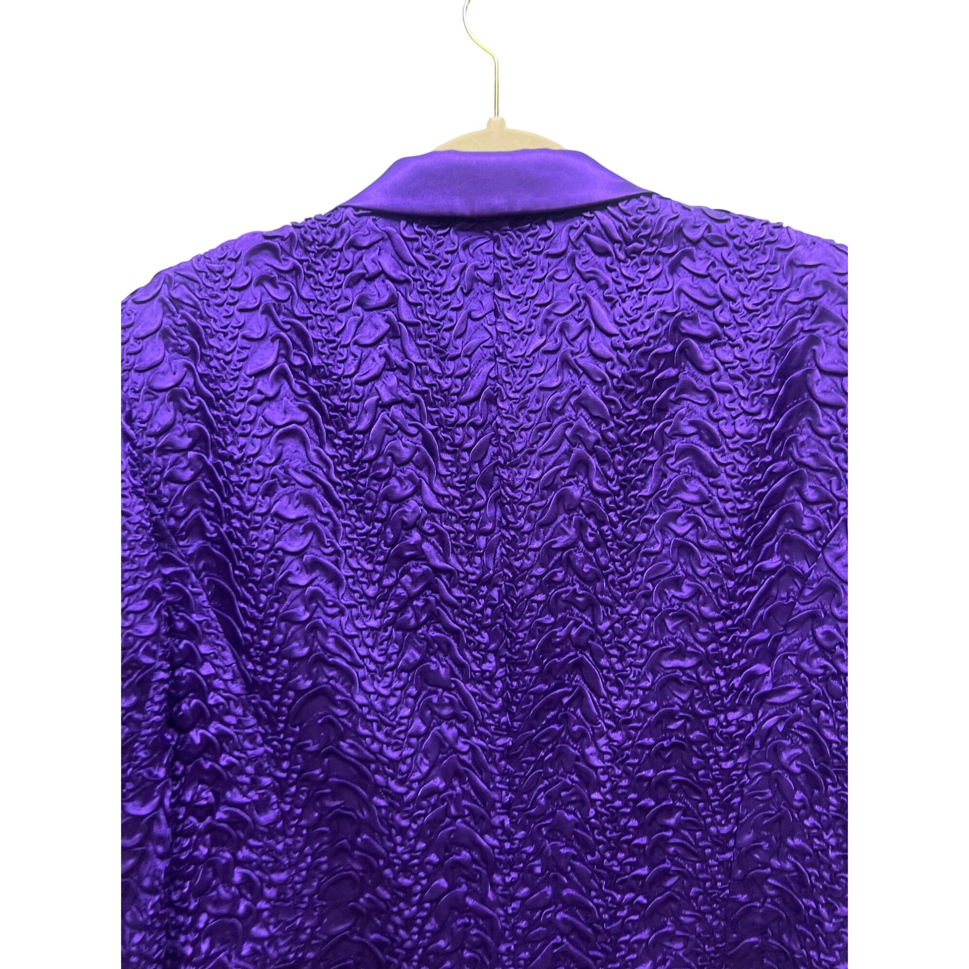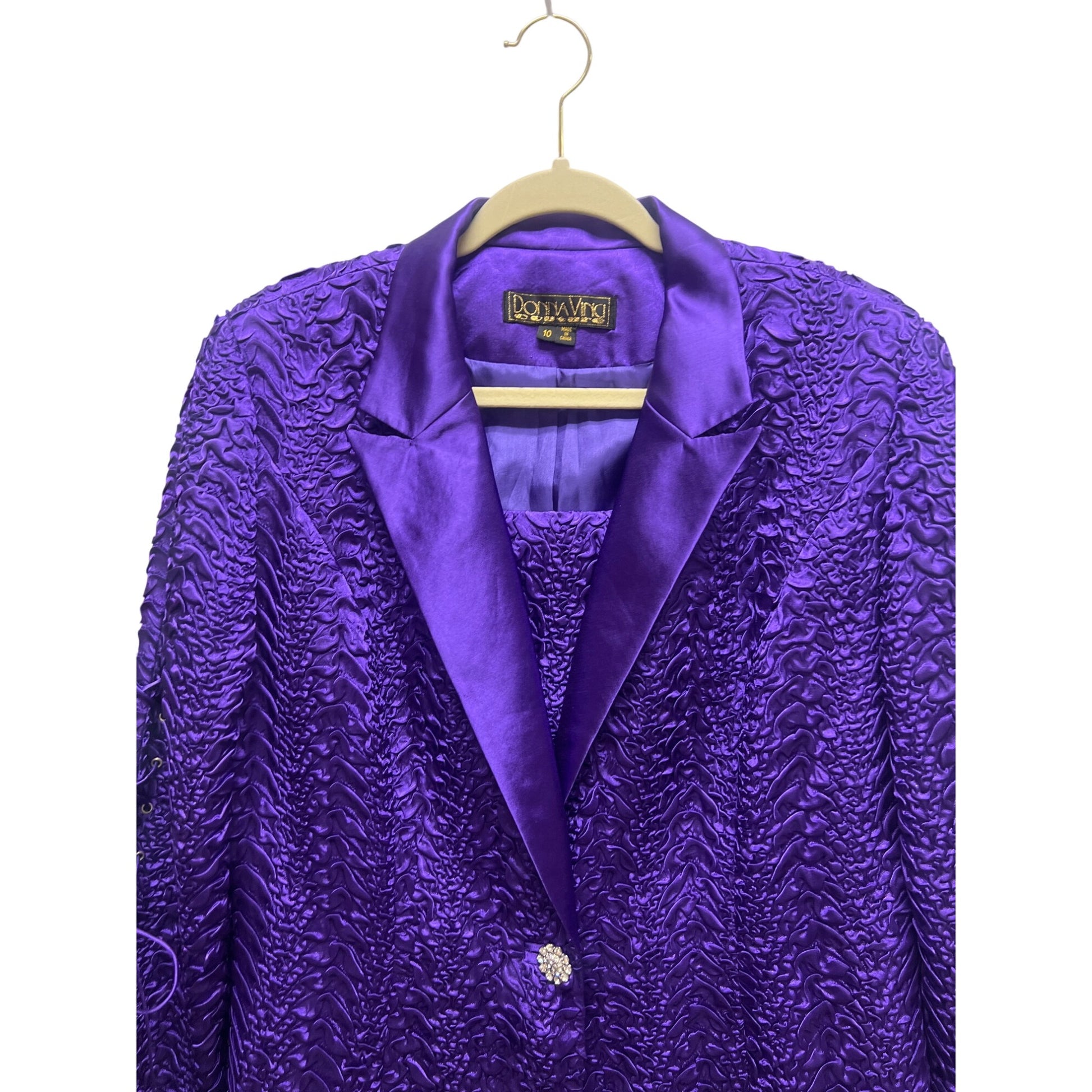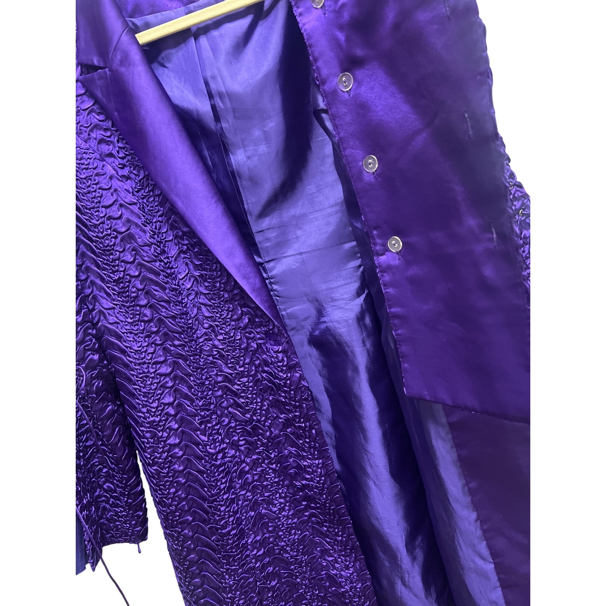 Elevate your style with this stunning Donna Vinci Purple Textured Satin Trench Coat Dress. The luxurious satin finish and unique texture make it perfect for any special occasion. Experience elegance and sophistication with every wear.