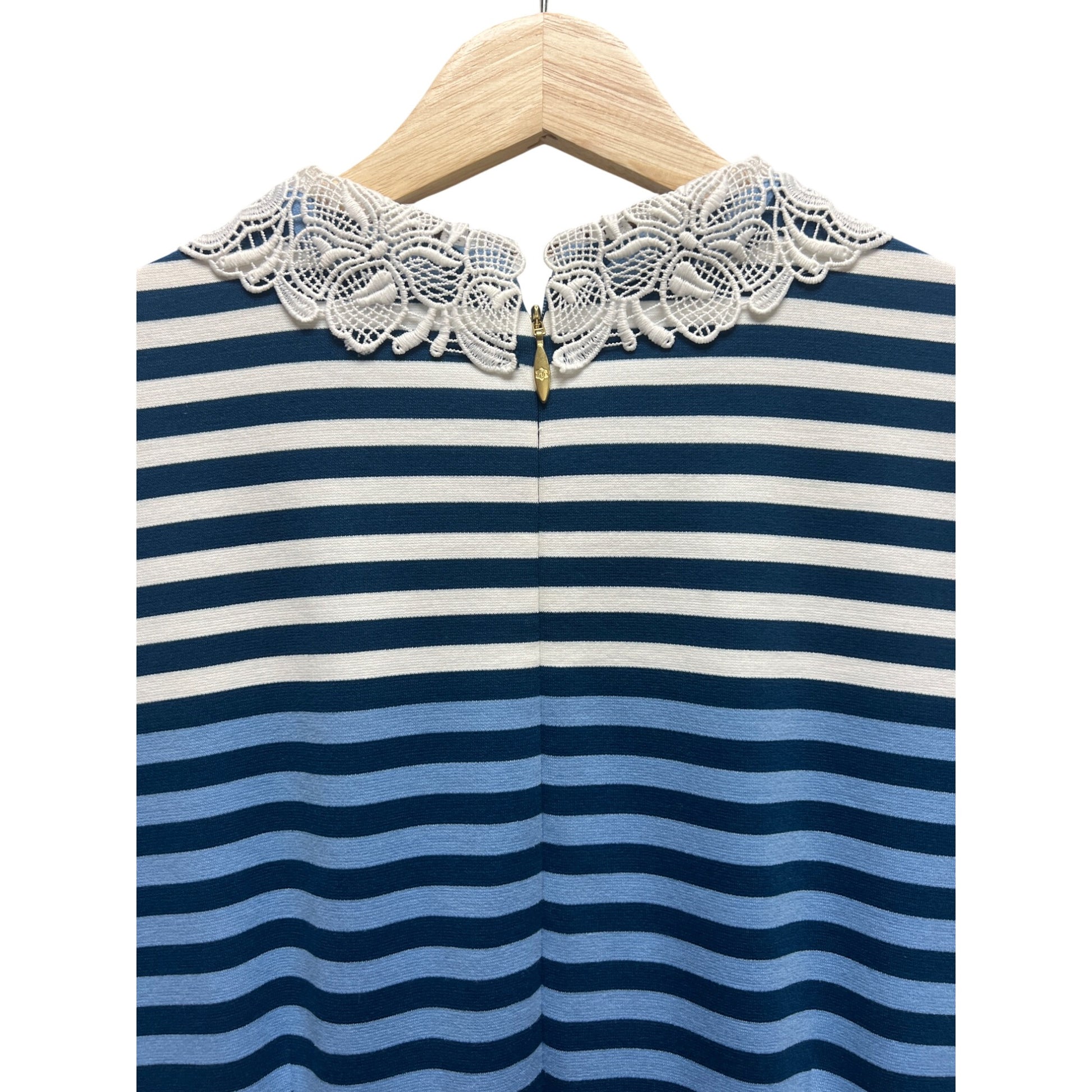 Draper James Blue Striped Lace Collar A-Line Knit Dress