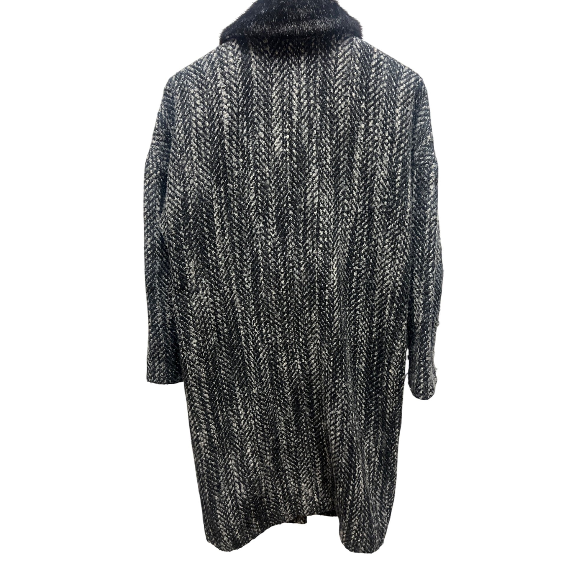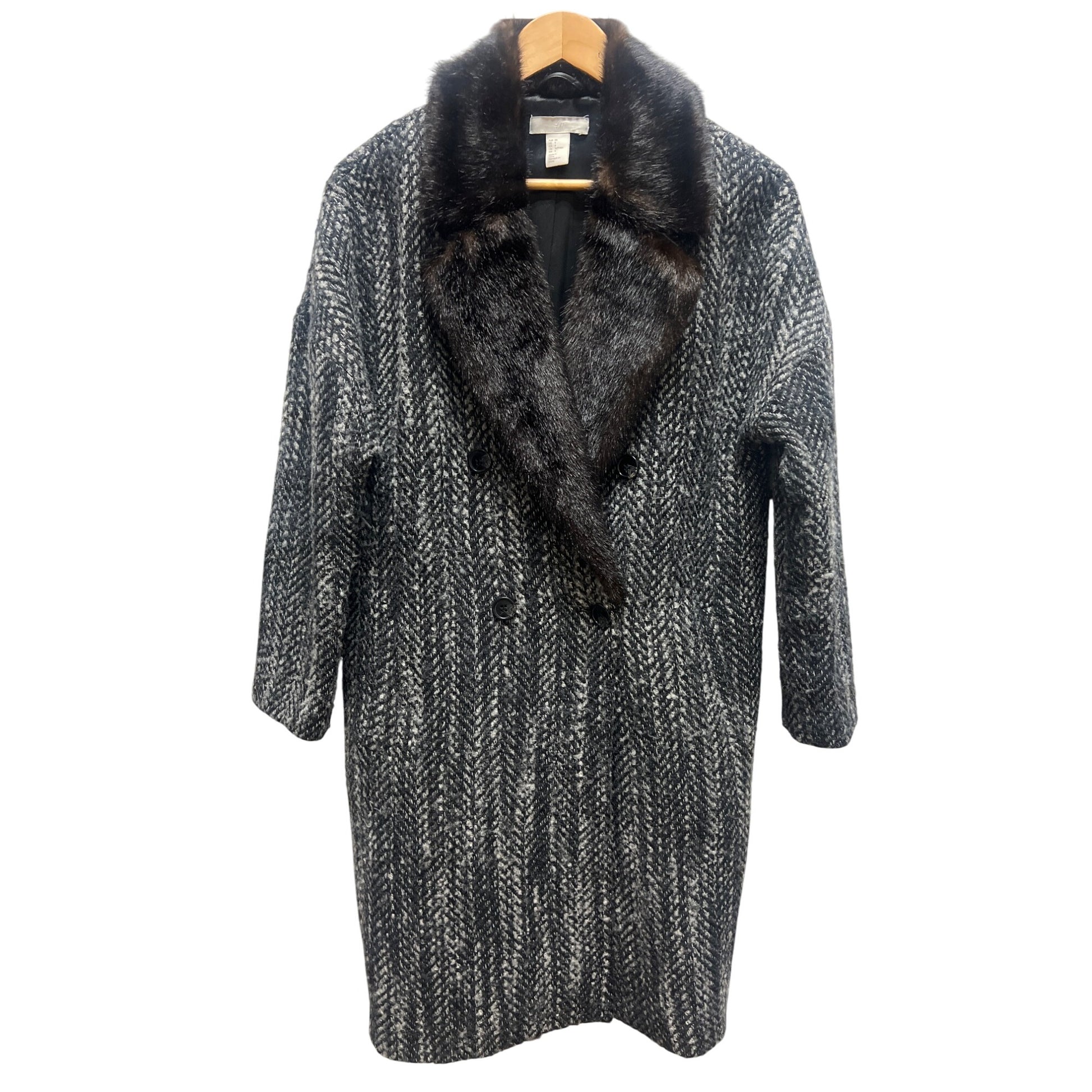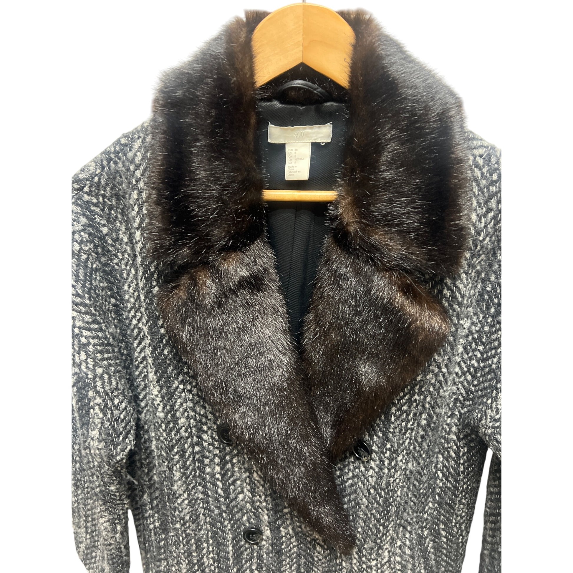 H&M Wool Blend Faux Fur Collar Tweed Overcoat