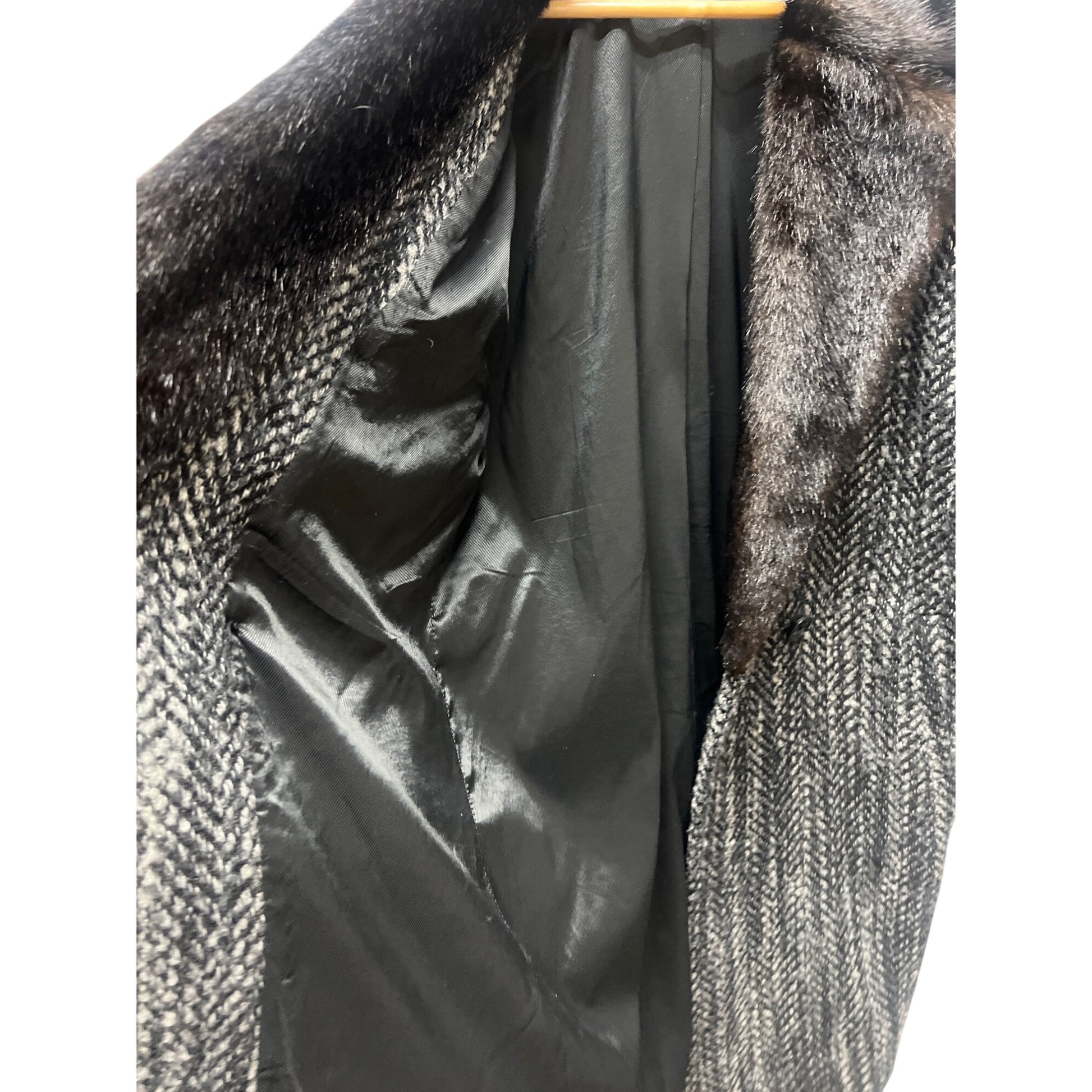 Elevate your style with this chic H&M overcoat, featuring a luxurious faux fur collar and classic tweed design. Perfect for adding sophistication to any outfit. Great preowned condition, some minor pilling
