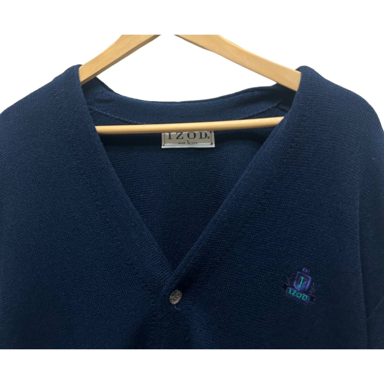 Izod Vintage 90's Navy Blue Embroidered Logo Wool Blend Cardigan Sweater