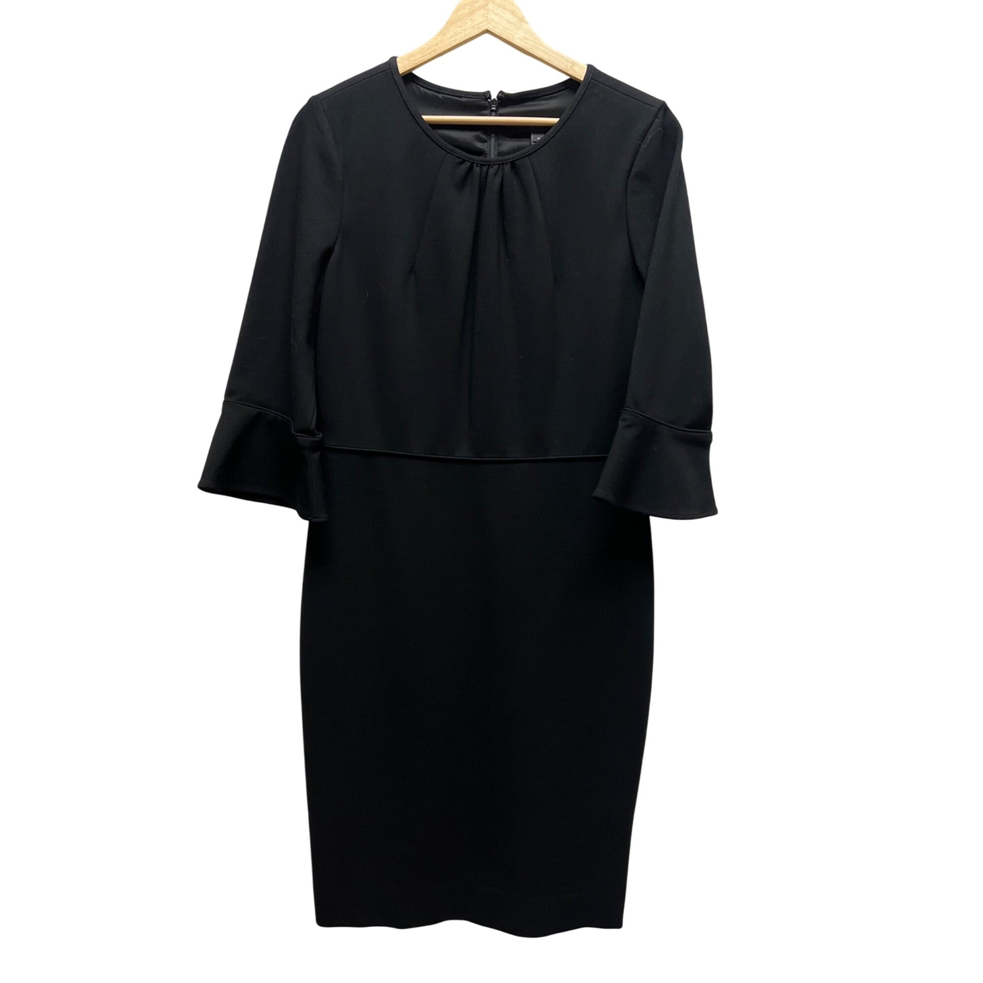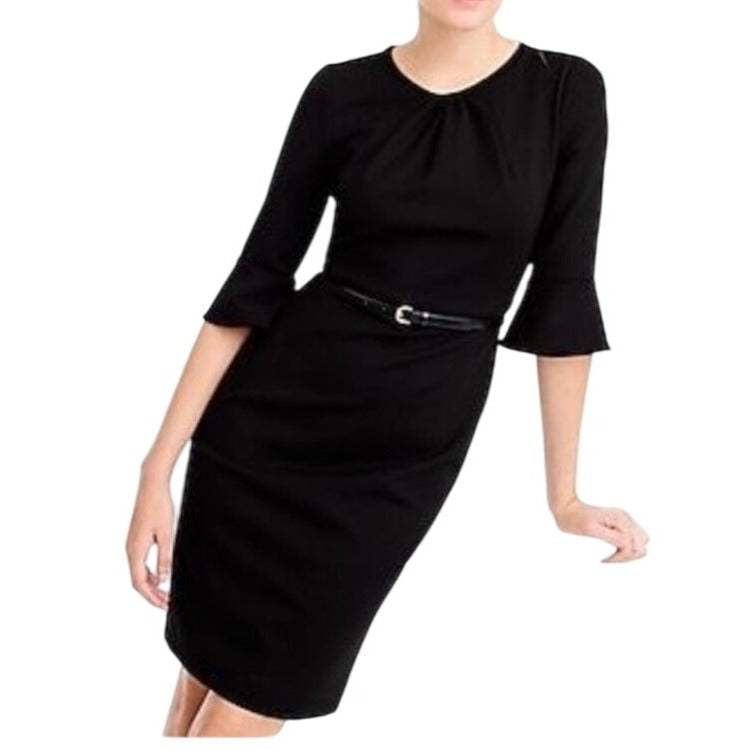Elevate your style with this chic J. Crew black sheath dress featuring elegant bell sleeves. Perfect for both formal and casual occasions, this timeless piece offers a flattering fit and sophisticated look. Excellent preloved condition!