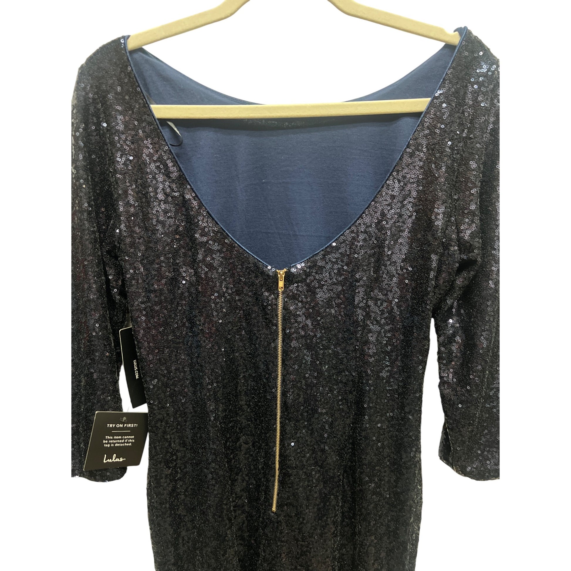 Elevate your style with Lulu's NWT Let's Dance Navy Blue Sequin Bodycon Midi Dress. Perfect for a night out, this stunning dress features intricate sequin detailing and a flattering bodycon fit.