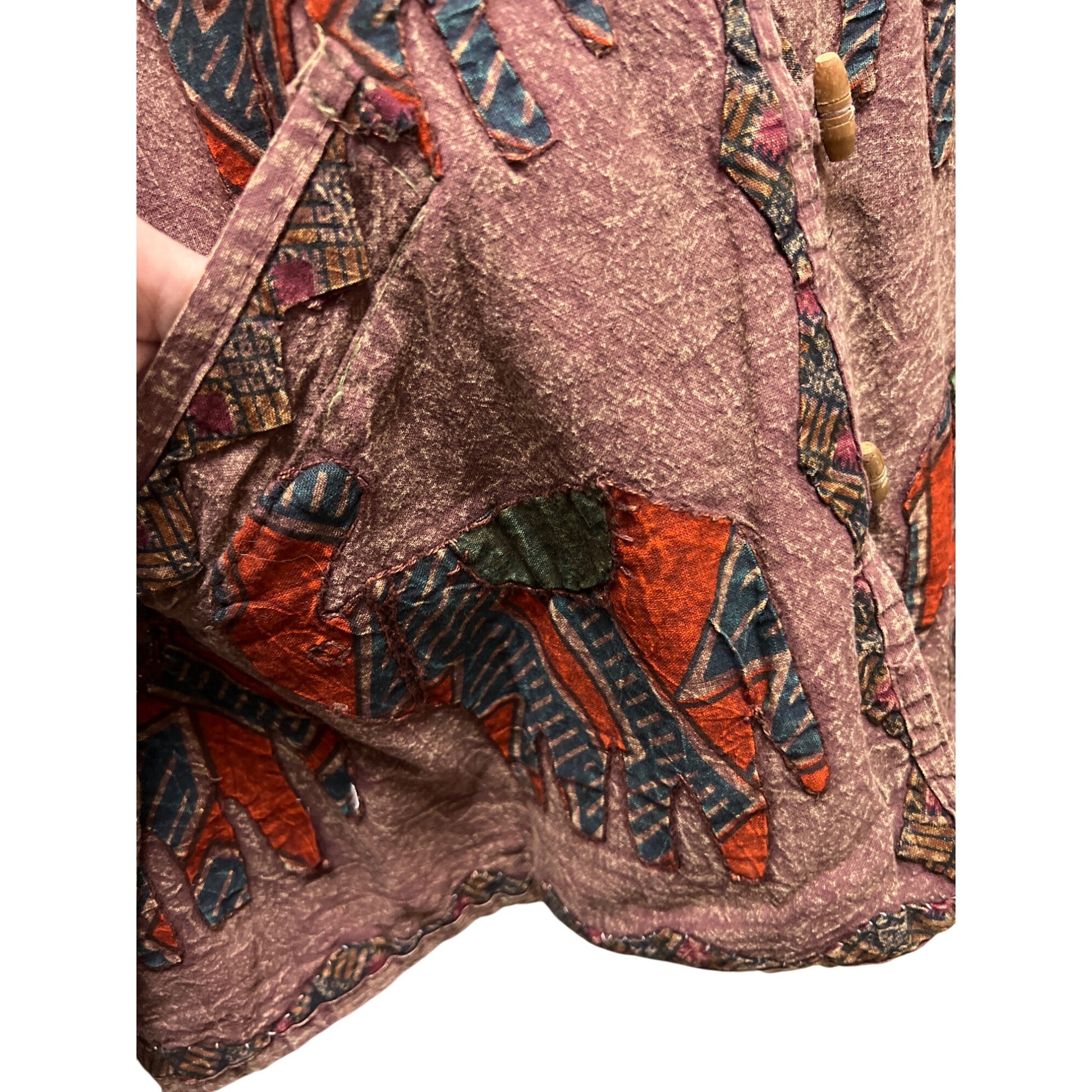 This Orvis distressed vintage jacket features intricate embroidered applique art with an elephant design, perfect for art enthusiasts and fashion lovers. Its unique style adds a creative touch to any wardrobe, making it a standout piece for any occasion. Aplique has been repaired in a couple of areas, in great vintage condition, see all photos!