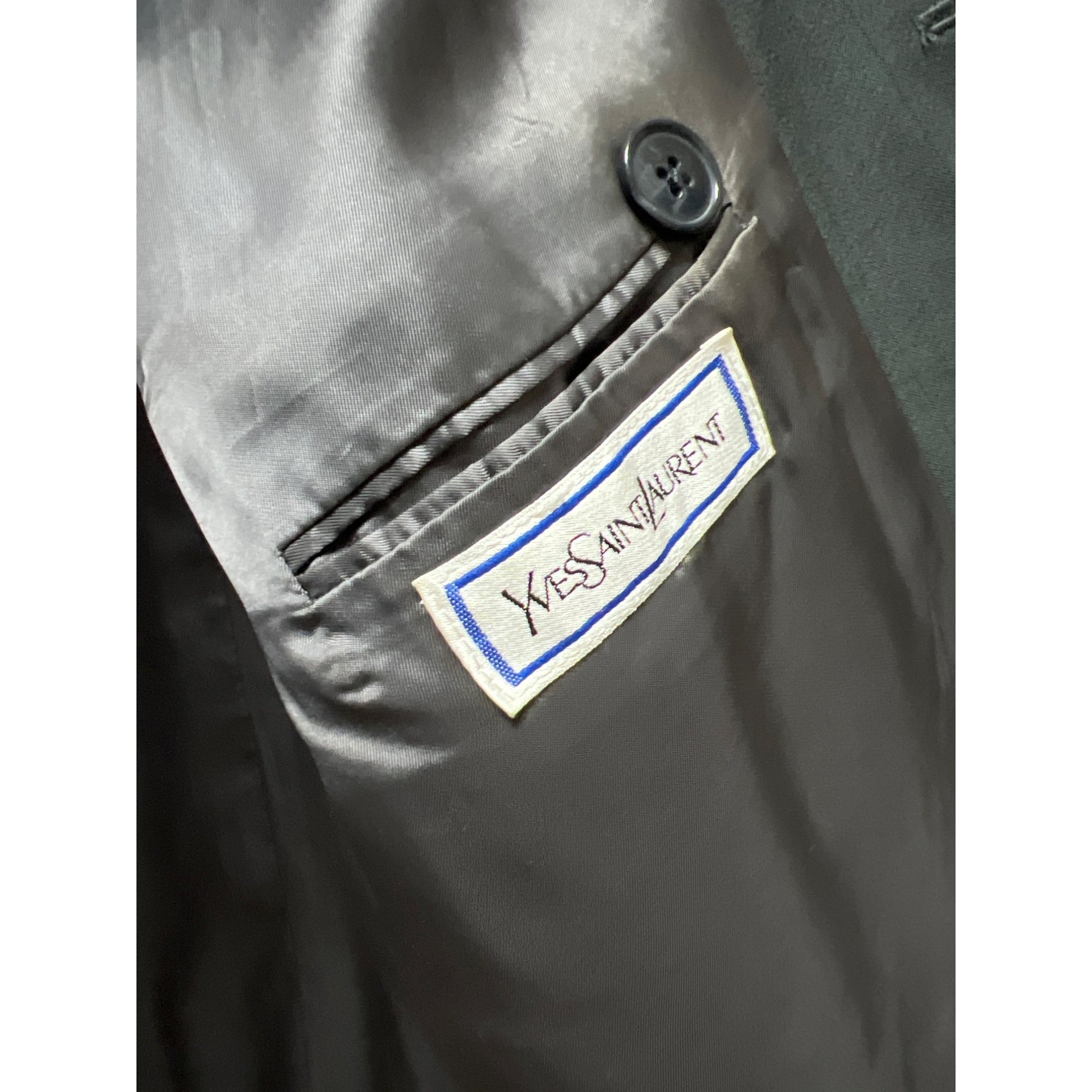 This vintage Yves Saint Laurent blazer from the 90s exudes timeless elegance. Crafted from gray wool, it features a double-breasted design, ideal for elevating any outfit. A must-have for fashion enthusiasts seeking classic sophistication. Good vintage condition, some normal wear.